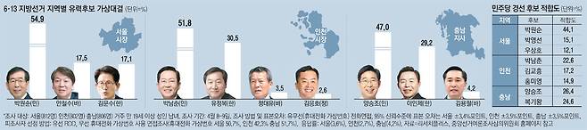 인천 與박남춘도 과반지지율..안희정 미투 후폭풍에도 충남, 與후보에 높은 지지