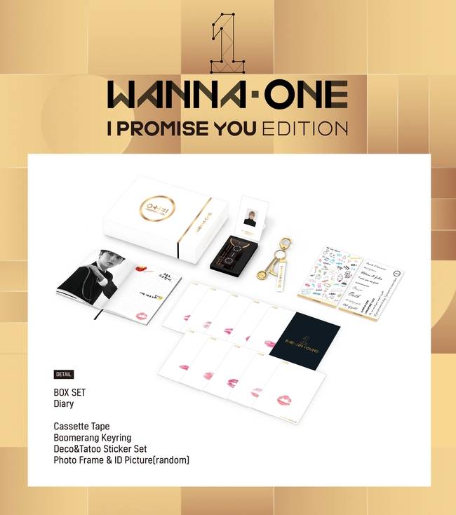 ‘I PROMISE YOU EDITION’은 아이돌 그룹 워너원의 두 번째 미니앨범 공식 MD 패키지로, 멤버들의 앨범 재킷을 포함한 다양한 컷이 담긴 다이어리 및 립 카드 세트, 멤버들의 음성메세지가 수록된 카세트테이프, 부메랑 스트랩 키링, 데코&타투 스티커 세트 등 다양한 워너원 관련 굿즈들이 한 박스로 구성돼 있다.