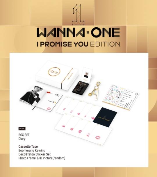 'I PROMISE YOU EDITION'은 아이돌 그룹 워너원의 두 번째 미니앨범 공식 MD 패키지입니다. 멤버들의 앨범 재킷을 포함한 다양한 컷이 담긴 다이어리와 립 카드 세트, 멤버들의 음성메세지가 수록된 카세트테이프 등 다양한 워너원 관련 굿즈들이 한 박스로 구성돼 있습니다.