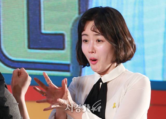 [서울경제] 배우 황우슬혜가 17일 오후 서울 송파구 롯데시네마 월드타워 시네파크에서 열린 영화 ‘레슬러(감독 김대웅)’ 데뷔 매치 쇼케이스에 참석하고 있다.