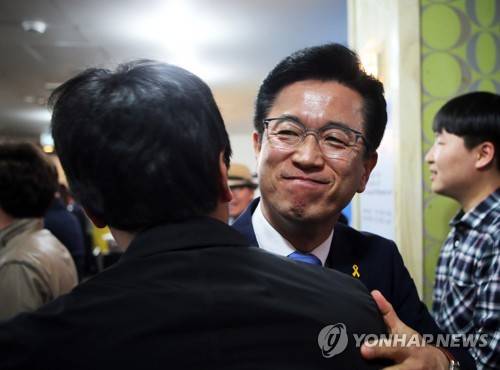 (대전=연합뉴스) 한종구 기자 = 허태정 전 유성구청장이 17일 오후 대전 서구 월평동 자신의 선거사무소에서 지지자들로부터 더불어민주당 대전시장 경선 승리 축하 인사를 받고 있다. 2018.4.17