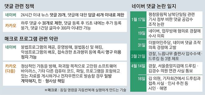드루킹 일당의 네이버 댓글 조작 사건 이후 포털 사이트의 댓글 및 뉴스 서비스 체계가 근본적으로 바뀌어야 한다는 요구가 높아지고 있다. 네이버 등 포털이 매크로(반복 명령 실행 프로그램)를 활용한 댓글 조작을 알고서도 방치했다는 책임론도 불거졌다. 이 기회에 국내 포털의 댓글 정책에 대한 재검토가 필요하다는 지적이다.