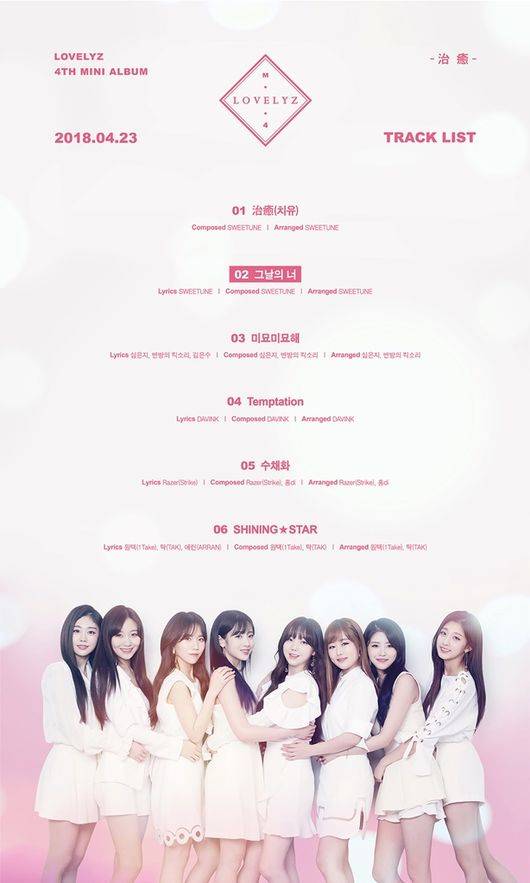 핑크빛 소녀 감성이 물씬 느껴지는 이미지 하단에는 청순한 자태로 순백의 요정미를 뽐내는 러블리즈 멤버들의 모습이 담겨 있으며, 그 위로 미니 4집에 수록된 트랙 목록이 기재돼 눈길을 끈다.