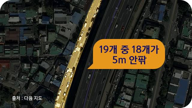 모든 주거지역 상황이 똑같은 건 아니다. 최소 규격만 맞추면 그 이상은 지자체장 재량이다. 찾아보니 기준보다 넓게 설치된 곳도 있었다. 그러나 법률상 최소 길이가 5m기 때문에 여기에 딱 맞춰 설치해도 문제 되지 않는다. 단지 이용하는 사람들이 좀, 꽤, 많이 불편할 뿐이다.