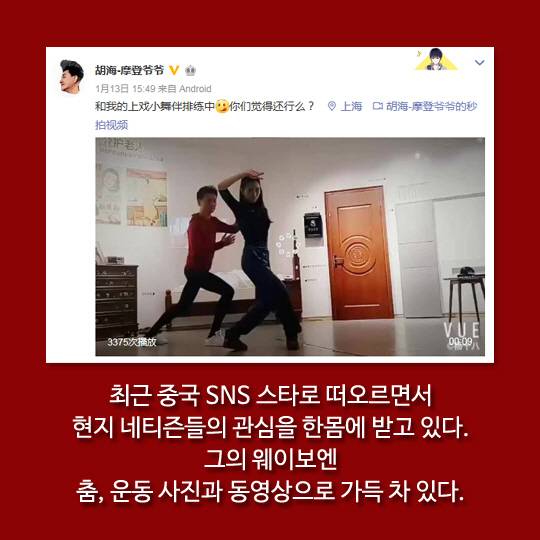 최근 중국에선 20대 외모를 지닌 68세 후하이(胡海)씨가 인터넷상에서 화제 되고 있다. 그의 웨이보엔 핑크색 정장에 선글라스를 쓴 모습부터 운동화에 캡 모자를 착용한 발랄한 모습까지 나이를 가늠할 수 없는 패션이 돋보인다. 후하이씨가 밝힌 동안 비결은 뭘까.