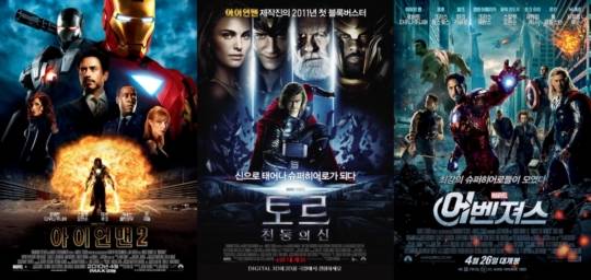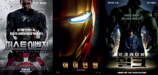 어벤져스(2012) ‘큐브’를 손에 넣은 로키의 악행으로, 쉴드의 닉 퓨리 국장은 아이언맨, 토르, 헐크, 캡틴 아메리카. 블랙위도우, 호크아이로 팀 ‘어벤져스’를 결성해 지구를 지킨다. 어벤져스 이전의 영화들인 ‘아이언맨’ ‘헐크’ ‘캡틴 아메리카’ 는 이 ‘어벤져스’를 만들기 위한 초석.