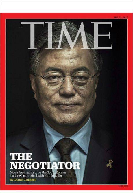 문재인 대통령은 대선 후보 시절인 2017년 5월 미국 시사잡지 '타임' 아시아판 표지를 장식했다. 이 잡지는 문 대통령을 '협상가'(the negotiator)로 묘사한 뒤 '문재인은 김정은을 다룰 수 있는 한국 지도자를 목표로 한다'는 소제목을 달았다.
