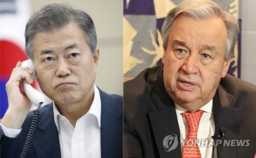 이에 구테흐스 사무총장은 "기꺼이 협력할 용의가 있다"고 대답하고 "안보리의 승인이 필요하지만, 한반도 평화정착에 도움이 되도록 노력하겠다"고 밝혔다.