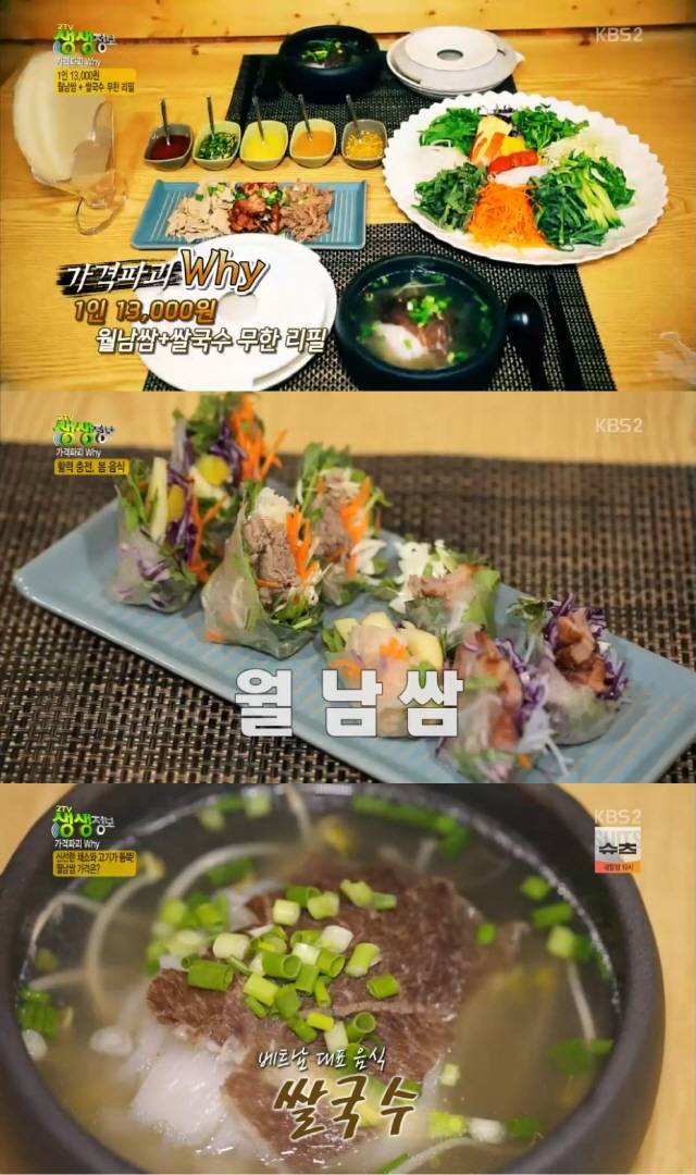 1일 방송된 KBS2 '2TV 생생정보'의 '가격파괴 WHY' 코너에서는 13000원 월남쌈+쌀국수 무한리필 맛집, 'SSAM'이 소개됐다.