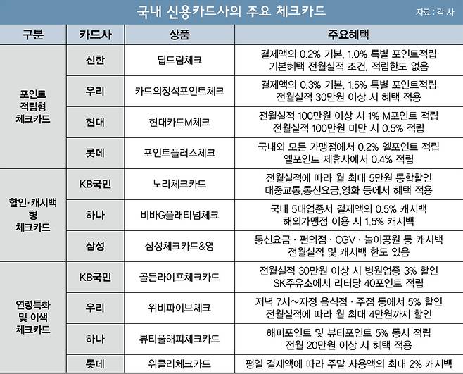 ◆카드사별 대표 체크카드… 포인트·할인형 등 다양