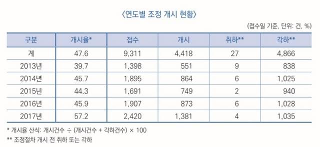 중재원이 작성한 '2017년도 의료분쟁 조정·중재 통계연보'를 보면 중재 개시율은 2013년 39%로 시작해 2016년까지 40%대에 머물렀습니다. 병원이 조정에 참여하지 않겠다고 하면 그냥 '각하'돼 버리기 때문입니다. 차병원 관계자는 바로 이 부분을 이야기 한 겁니다. 2016년 의료분쟁 상담은 4만6000건에 이르지만 조정을 신청한 건 1907건에 불과하고, 조정 개시는 831건에 그쳤습니다.