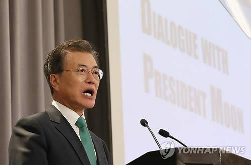 (서울=연합뉴스) 임형섭 기자 = 문재인 대통령은 8일 "북한과 일본의 대화가 재개돼야 한다"며 "북일관계가 정상화하면 한반도를 넘어 동북아 평화와 안정에 기여하게 될 것"이라고 말했다.