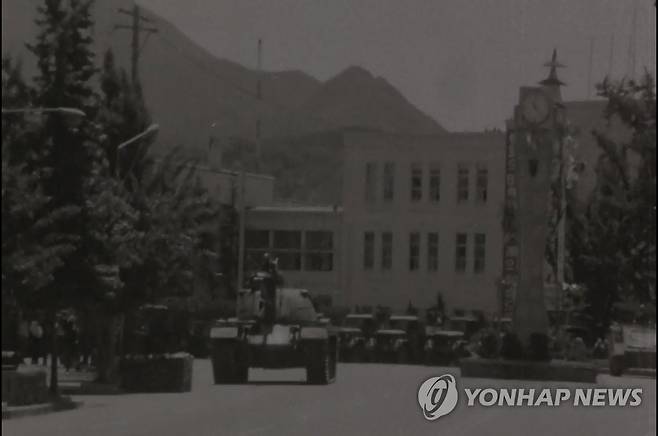 (광주=연합뉴스) 9일 5·18민주화운동기록관은 1980년 5월 기록한 광주항쟁 영상을 공개했다. 기록관이 익명의 수집가로부터 입수한 영상은 1980년 5월 20일부터 6월 1일까지 국군통합병원과 적십자병원 환자 치료 상황, 전남도청 기자회견 등 광주 일대와 근교를 촬영했다. 세상에 처음으로 공개되는 이 영상은 이달 10일부터 30일까지 기록관 3층에서 상영한다. 사진은 1980년 당시 탱크가 배치된 광주도심의 모습. 2018.5.9 [5·18민주화운동기록관 제공 영상 캡처=연합뉴스]