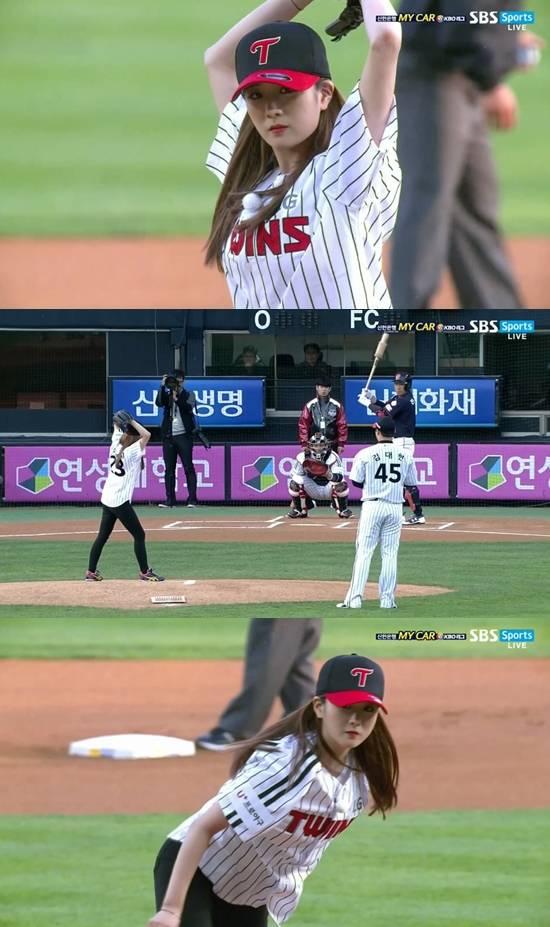 지난 2014년 첫 시구에 나선 윤보미는 완벽한 투구자세과 정확한 제구로 팬들의 극찬을 받았다.