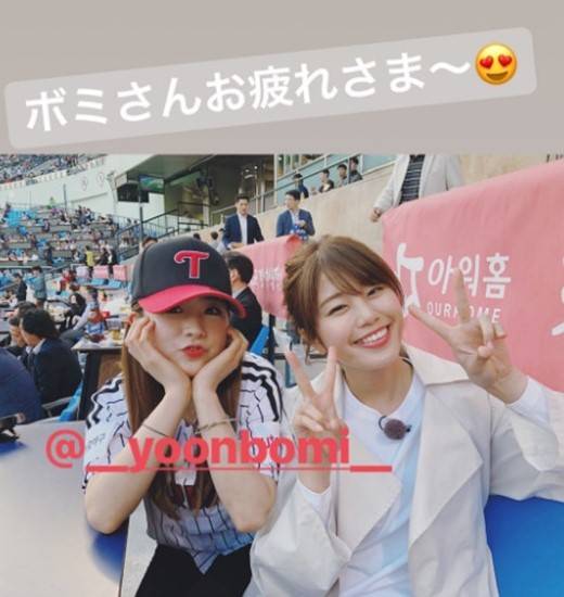'뽐가너' 윤보미가 연예인 시구의 새로운 역사를 쓴 가운데 일본의 시구여신이라 불리는 이나무라 아미를 만난 것으로도 화제를 모으고 있다.