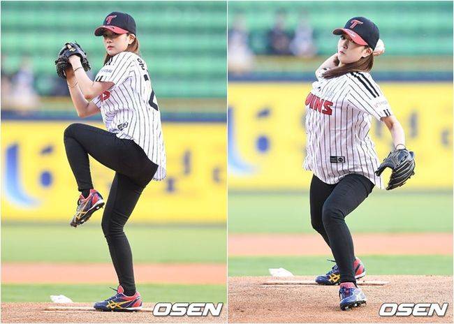윤보미는 지난 10일 서울 잠실구장에서 열린 LG 트윈스와 롯데 자이언츠의 경기에 시구자로 나서 스포트라이트를 받았다. 윤보미는 완벽한 투구 자세로 정확하게 공을 던져 큰 박수를 받았고, 스파이크까지 신고 나와 개념시구가 무엇인지 확실하게 보여줬다는 평이다.