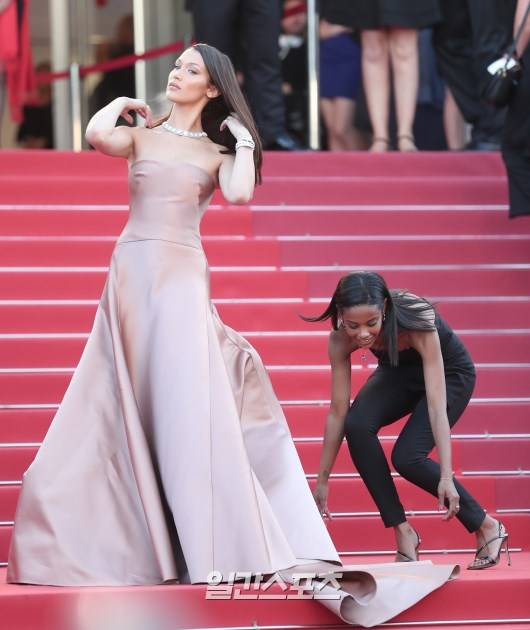 모델 벨라 하디드가 11일(현지시간) 오후 프랑스 칸 팔레 드 페스티발에서 열린 '제 71회 칸 국제영화제'(Cannes Film Festival) 경쟁부문에 진출한 ‘애쉬 이즈 퓨어리스트 화이트’ 레드카펫에 참석하고 있다.