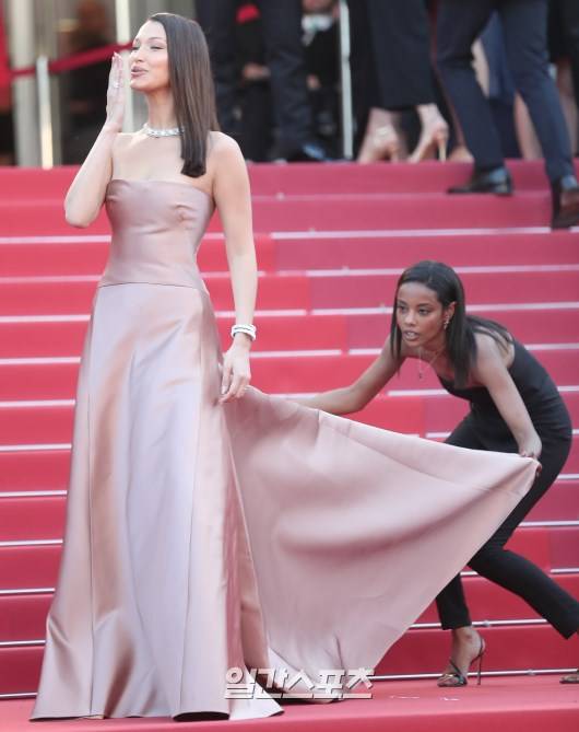 모델 벨라 하디드가 11일(현지시간) 오후 프랑스 칸 팔레 드 페스티발에서 열린 '제 71회 칸 국제영화제'(Cannes Film Festival) 경쟁부문에 진출한 ‘애쉬 이즈 퓨어리스트 화이트’ 레드카펫에 참석하고 있다.