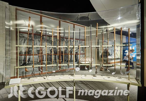 명예의 전당에는 인물들만 모아놓은 것이 아니다. 골프클럽, 골프 공 등 골프용품의 발전사도 한눈에 돌아볼 수 있다. 초창기 나무 클럽들의 모습이 전시돼 있는데 폴란드어로 이를 ‘콜프(Kolf)’라 한다. 이것이 오늘날 ‘골프(Golf)’의 어원이 됐다. 또 소가죽 안에 오리털을 채워 넣은 ‘페더볼’ 등 다양한 골프의 유산들이 진열돼 있다. 초창기 골프를 즐기던 귀족들의 ‘골프 패션’도 그림으로 소개돼 있다. 가장 눈길을 끈 것은 달 표면에서 사용한 역사적인 ‘6번 아이언’의 모습을 본떠 만든 모조 클럽이다. 우리가 알고 있는 일반 아이언과는 다르게 샤프트를 접을 수 있는 ‘접이식‘으로 만들어진 특제 아이언이다.