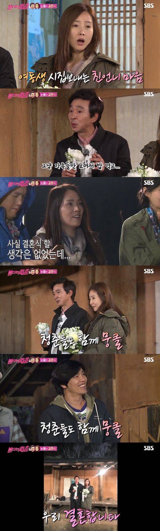 지난 15일 방송된 SBS 예능 '불타는 청춘'에서는 김국진과 강수지가 청춘들의 축하 속에서 아름다운 결혼식을 올리는 모습이 전파를 탔다.