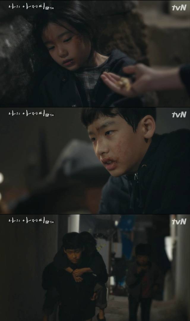 그와 함께 어린 이지안에게 과자를 주고 업어주는 어린 이광일의 모습이 그려졌다. 이광일은 그 도청파일을 들으며 눈물 흘렸고, 이어 이지안을 찾아 나섰지만 만나지 못했다. 반면 종수는 도준영에게 1억을 요구하며 갈등을 예고했다. (사진=tvN ‘나의 아저씨’ 캡처)