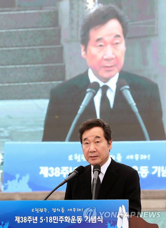 (광주=연합뉴스) 이진욱 기자 = 이낙연 총리가 18일 오전 광주 국립 5·18 민주묘지에서 열린 제38주년 5·18 민주화운동 기념식에서 기념사하고 있다. 2018.5.18