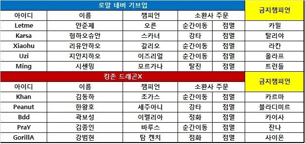 2세트 킹존 드래곤X 승 < 소환사의협곡 > 승 로얄 네버 기브업