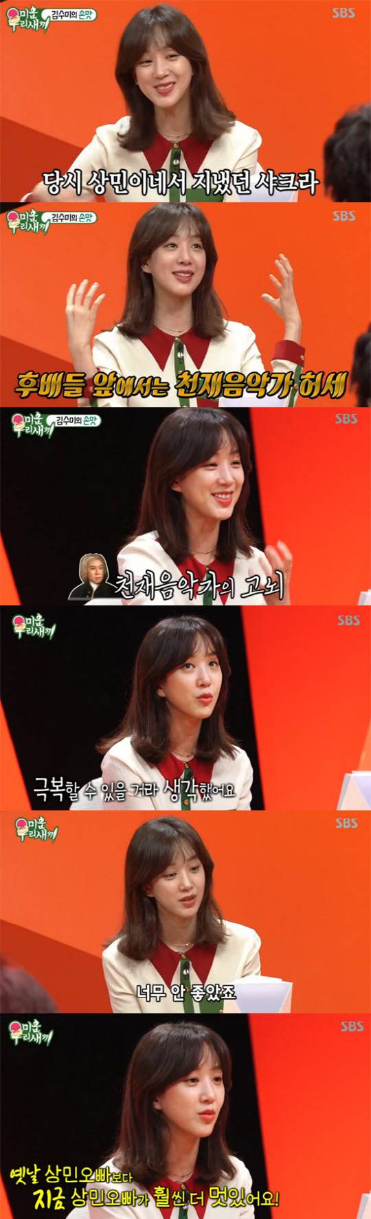 또한 이상민이 빚더미에 있다는 기사를 보고 "너무 마음이 안좋았다. 기사가 오보인줄 알았다"고 회상했다. 이어 "그 사실을 알았을 때 상민 오빠는 잠적했을 때였다. 내가 알던 상민오빠는 무너지지 않는다고 믿었다. 결국 이렇게 해냈다. 예전에 알던 상민 오빠보다 지금의 상민 오빠가 훨씬 더 멋있다"고 말했다.
