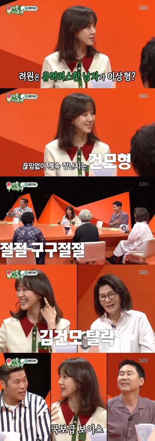 이에 "끊임없이 장난치는 김건모 같은 사람은 어떠냐"고 묻자 정려원은 멋쩍은 미소를 지으며 "나를 웃기게 해주는 사람보다 옆에 있으면 웃음이 나는 사람이 좋은 것이다. 노래 잘하는 사람은 좋아한다"고 구구절절 설명해 보는 이들을 폭소케 했다.