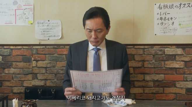 영업직 무역상, 40대 중년 남자가 일 끝난 후 근처 맛집에 들러 홀로 식사를 한다.