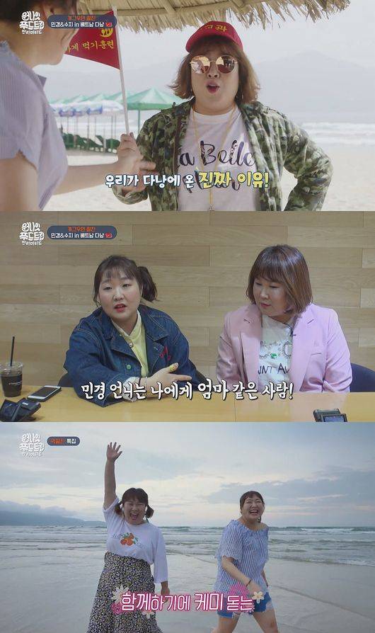 방송을 앞둔 김민경은 “잘 먹는다는 이미지와 기대가 있어서 도전하고 싶은 마음 반, 부담스러운 마음 반이었다. 그러나 이수지와 함께 한다고 해 고민 없이 출연을 결정했다”고 함께한 여행 파트너 이수지에 대한 애정을 가감없이 드러냈다.