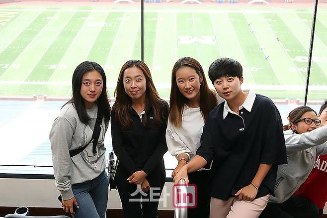 [이데일리 골프in 앤아버(미국)=박태성기자] 22일(현지시간) 미국 미시건주 앤아버의 트래비스 포인트 컨트리클럽(파72ㅣ6,744야드)에서 미국여자프로골프투어(LPGA) '2018 볼빅 챔피언십(총상금 130만 달러-한화 약 14억 원) 프로암 갈라쇼가 열린가운데, 최운정(28.볼빅)과 김효주(23.롯데)의 언니들이 함께 포즈를 취하고 있다.