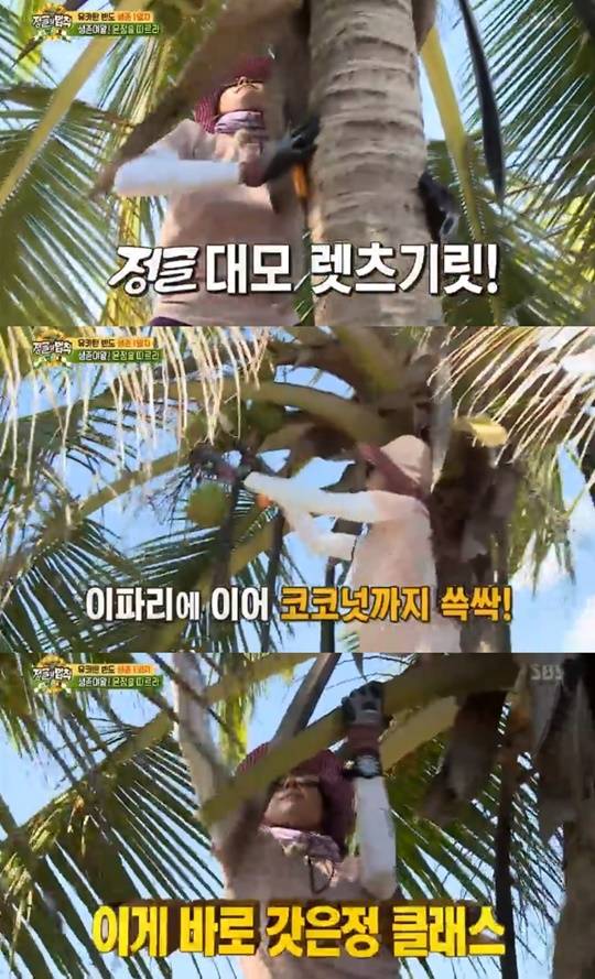 서은광은 코코넛을 따기 위해 나무에 올라갔으나 벌레를 보고 기겁하는 모습을 보였다. 이에 한은정이 "내가 올라갈까"라며 적극적으로 나섰고, 커다란 야자수 잎과 코코넛을 한가득 땄다. 이 모습을 본 서은광은 "거의 부족장님이다"며 감탄했다.