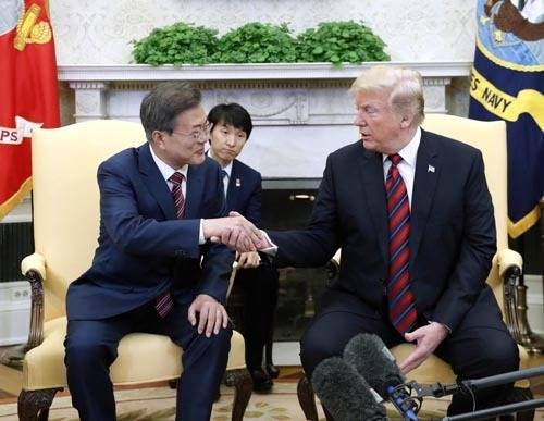 문 대통령은 특히 지난 22일 백악관에서 열린 트럼프 대통령과의 한·미 정상회담에서 트럼프 대통령에게 ‘한국어 특강’을 한 것으로 알려져 워싱턴 외교가에 화제가 되고 있다. 트럼프 대통령이 문 대통령과 직접 만나기 전인 지난 16일에 김계관 북한 외무성 제 1부상이 담화를 통해 “핵 포기만 강요하려 든다면 대화에 흥미를 가지지 않을 것이며 다가오는 조미 수뇌회담에 응하겠는가 재고려할 수밖에 없을 것”이라고 협박했었다.