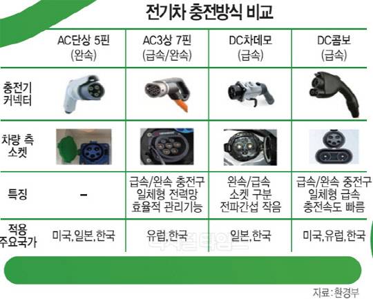 한국, DC콤보·차데모·AC3상 혼용