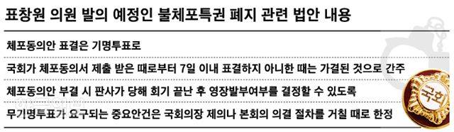 다만 법안 통과 가능성은 미지수다. 4년 전 19대 국회 때도 체포동의안 표결을 기명투표로 전환하는 국회법 개정안이 3건이나 발의됐지만 이내 뒷전으로 밀려 폐기됐다. 이준한 인천대 정치외교학과 교수는 “법 개정이 최선이지만 전례에 비춰 상임위 논의에도 오르지 못할 가능성이 높다”며 “의원들이 체포동의안에 반대하는 이탈표가 나오지 않도록 국민과 언론이 국회 견제를 강화하는 게 현실적인 대안”이라고 말했다.