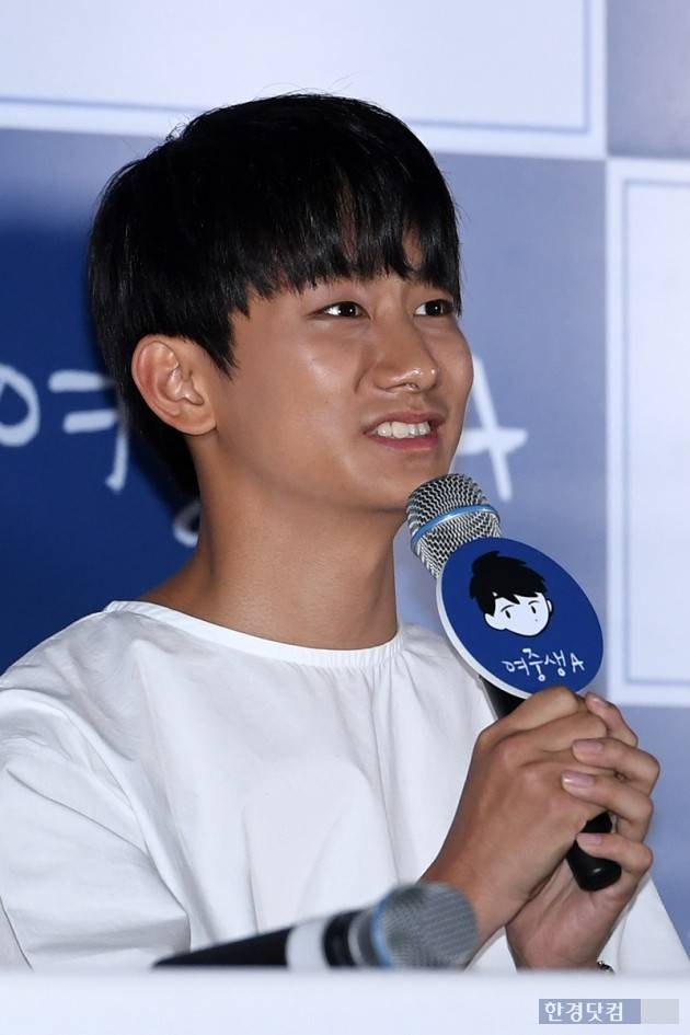 배우 유재상이 4일 오후 서울 자양동 롯데시네마 건대입구에서 열린 영화 '여중생A'(감독 이경섭, 제작 영화사 울림 , 네이버웹툰) 언론시사 및 기자간담에 참석해 질문에 답하고 있다.