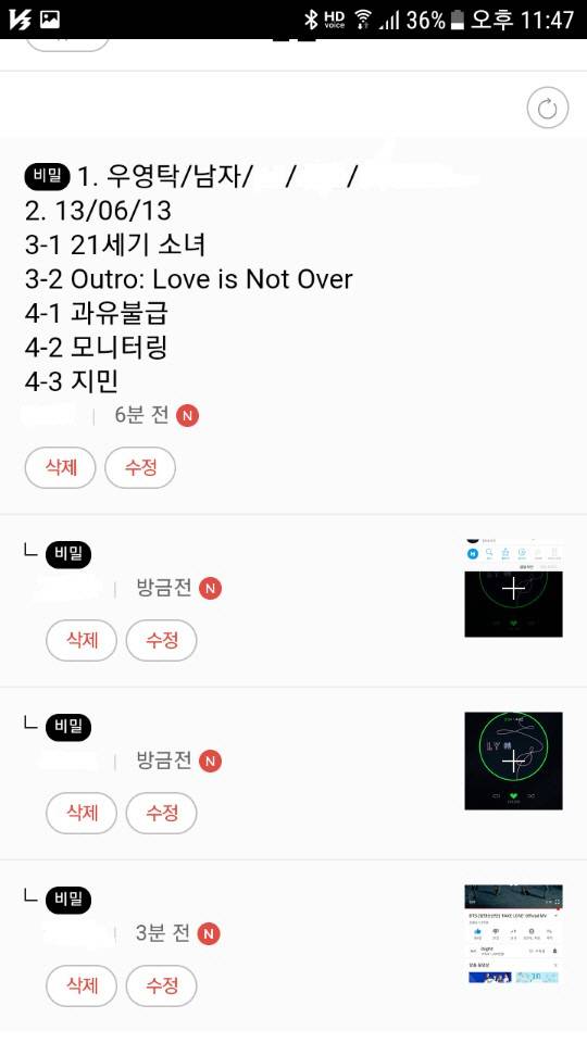 ◇스트리밍, 뮤직비디오 인증까지 완료 그런데 등업이 안된다? 다음은 스트리밍 인증, 뮤직비디오 시청 인증이다. 신곡 ‘페이크 러브’를 멜론 등 유료 음원 스트리밍 사이트에서 듣고 이를 캡처해서 인증해야 한다. ‘페이크 러브’는 총 4분 2초의 곡이다. 이중 3분 50초 이상 지난 시점에서 신청하는 날짜가 보이게끔 스크린샷을 누른다. ‘좋아요’도 당연히 눌러야 한다. 뮤직비디오 역시 유튜브에서 ‘페이크 러브’ 뮤직비디오를 보고 ‘좋아요’와 ‘구독중’ 버튼을 클릭한 다음 인증샷을 캡처하면 된다. ‘페이크 러브’ 뮤직비디오의 분량은 5분 18초. 5분 이상 시청 이후 캡처 버튼을 누르자.