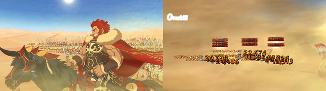 또한 대미지를 올리는 방법이 공격력 UP, 보구 위력 UP, 버스터 카드 성능 UP으로 모두 다르다. '페이트/그랜드 오더'의 대미지 계산 방식은 같은 종류의 대미지 버프는 더하고, 다른 종류의 대미지 버프는 곱하여 계산하는 것이다. 때문에 서로 다른 대미지 버프 스킬이 있다면 모두 곱해져 엄청난 대미지를 자랑하게 된다. 이러한 점으로 '이스칸다르'는 적 전체 공격 보구 중 가장 강력한 위상을 차지하고 있다.