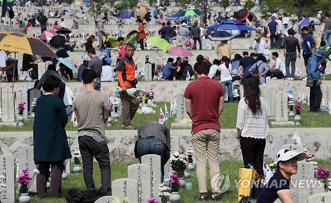 (서울=연합뉴스) 이지은 기자 = 제63회 현충일인 6일 오전 서울 동작구 국립서울현충원이 참배객으로 북적이고 있다. 2018.6.6