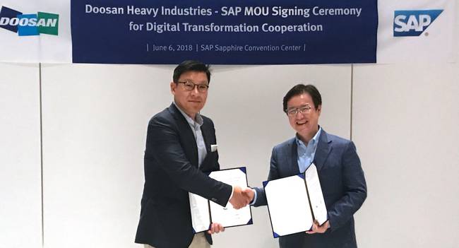 두산중공업이 글로벌 IT기업 SAP와 손잡고 발전 플랜트 등 주요 사업의 '디지털 전환' 속도를 높인다.