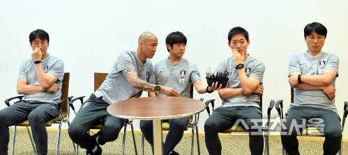 김해운, 차두리, 이재홍, 김남일, 전경준 등 축구대표팀의 코칭들이 8일 오후 (현지시간) 오스트리아 레오강의 대표팀 숙소에서 인터뷰에 응하고있다. 2018.06.08. 레오강(오스트리아) | 김도훈기자 dica@sportsseoul.com