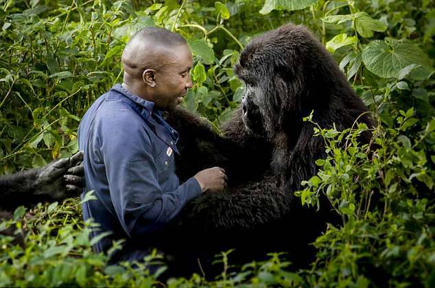 사진에서 고릴라가 진심을 다해 포옹을 하고 있는 남성의 정체는 콩고민주공화국 비룽가국립공원에서 일하는 관리사 ‘앤드레’다.