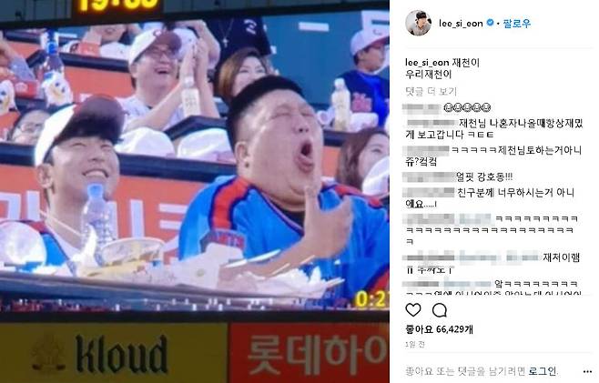 경기 후 이시언은 자신의 인스타그램에 "재천이, 우리 재천이"라는 글과 함께 재천 씨의 표정이 담긴 사진을 올리며 애정을 드러냈다.