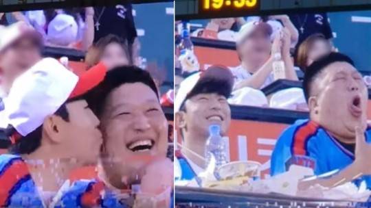'야구장 키스타임' 걸리자 이시언에게 뽀뽀 당한 친구 반응