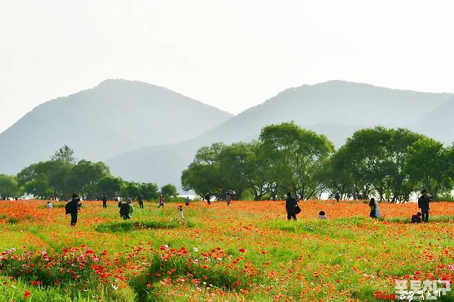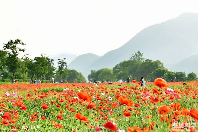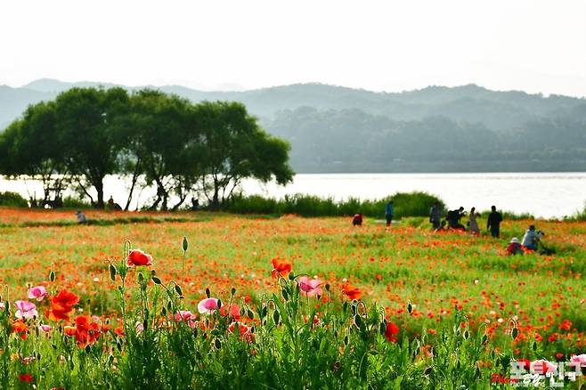 경기 남양주에 위치한 물의 정원에 개양귀비가 활짝 만개하였습니다.