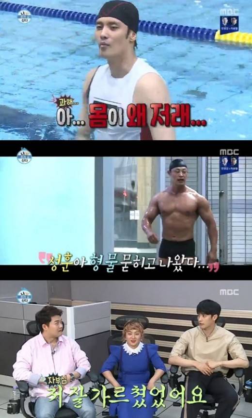 VCR로 이를 지켜보단 박나래는 “나도 수영을 못한다. 배우고 싶다”고 바람을 전했다. 이에 성훈은 “나 수영 되게 잘 가르친다. 강사도 했었다”며 자신감을 드러냈다.
