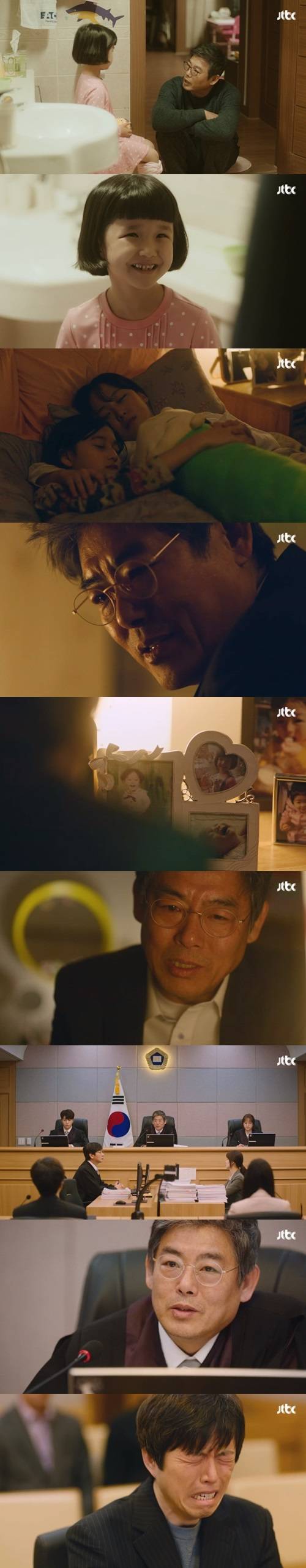 원고는 한세상의 판결에 눈물을 쏟았다. 원고의 안타까운 사연을 이해하면서도 원고의 딸들을 위한 판결을 내리는 한세상의 모습이 진짜 부성애를 보여주며 뭉클한 감동을 선사했다. (사진=JTBC ‘미스 함무라비’ 캡처)