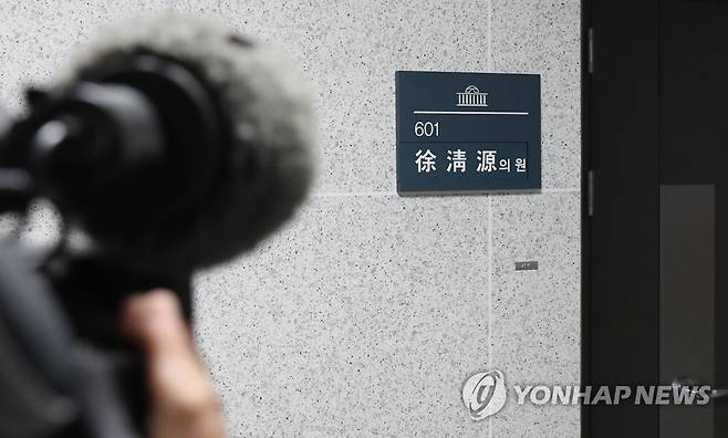 (서울=연합뉴스) 하사헌 기자 = 자유한국당 서청원 의원이 6·13 지방선거 참패에 따른 책임을 지고 탈당키로 한 20일 오전 문이 닫힌 국회 의원회관 서청원 의원실 앞에서 기자들이 취재하고 있다. 2018.6.20