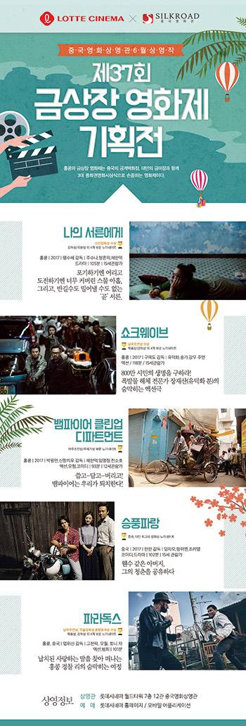 롯데시네마가 월드타워 중국영화상영관에서 금상장 영화제 기획전을 진행한다. 홍콩의 ‘금상장 영화제’는 중국의 ‘금계백화장’, 대만의 ‘금마장’과 함께 3대 중화권영화시상식으로 손꼽히는 영화제이다. 이번 기획전에서는 제37회 금상장 영화제의 수상작 및 후보작 중 총 5편을 상영한다. 그중에서도 <쇼크 웨이브>는 한국 관객들에게 많은 사랑을 받은 중국배우 유덕화가 주연을 맡은 작품이다. 폭발물 해체 전문가 장재산(유덕화)의 잠입수사로 은행털이 일당이 검거된다. 그 공로를 인정받아 시상대에 오르게 되지만, 시상식이 끝난 후 상관의 차가 폭발하는 사건이 발생하게 되고 연이어 도심 곳곳에 폭발물이 설치된다. 영화는 유덕화의 액션신과 숨막히는 긴장감 속 진행되는 스토리가 관람 포인트로, 6개 부문에 노미네이트 됐다. 기획전은 오는 30일까지 롯데시네마 월드타워에서 만나볼 수 있다.